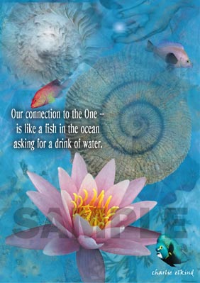 | A FISH IN WATER Photo-Collage and design (Quote On Card by c. elkind) Our connection to the One - is like a fish in the ocean asking for a drink of water. |