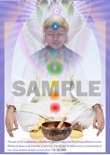 | Meditation original artwork, photocollage and design by charlie elkind quote by N. Sri Ram from "Thoughts for Aspirants" |