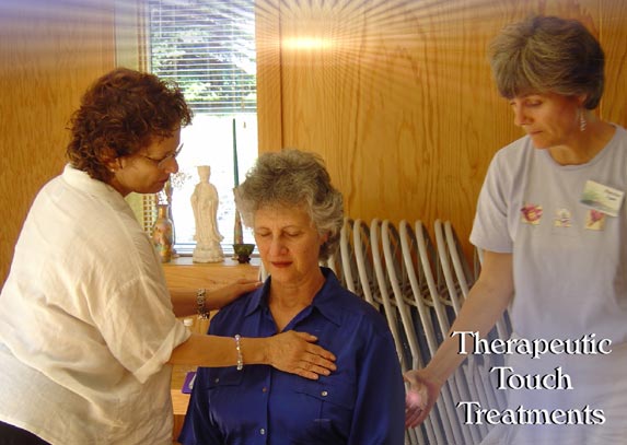 Linda Gurick and Maurine Egan giving a TT treatment to Patricia Abrams
